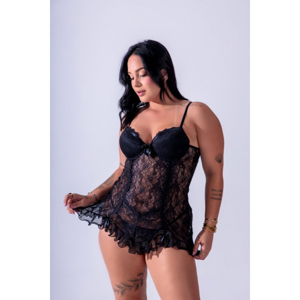 A leve transparência combinada aos detalhes rendados cria um visual envolvente, sofisticado e extremamente feminino. É aquela peça que transforma a atmosfera, elevando a autoestima e despertando olhares sem precisar de exageros.