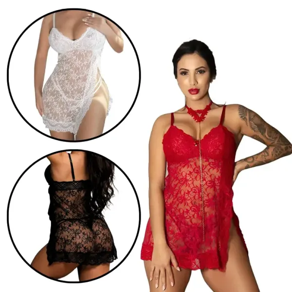 A Camisola em Rendão com Abertura Lateral e Calcinha é a peça perfeita para elevar o clima e tornar seus momentos a dois ainda mais especiais.