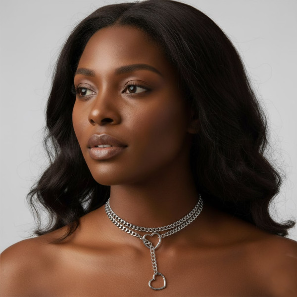 Desperte sensações intensas e uma conexão única com o Colar Enforcador de Corrente com 2 Corações, perfeita para explorar a entrega e a submissão de maneira elegante e sensual.