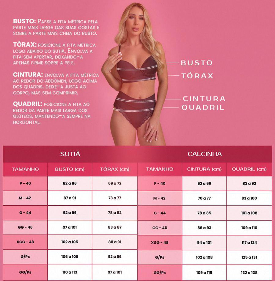 Atenção: Alguns detalhes e rendas podem sofrer alterações por parte do fornecedor, permanecendo os mesmos modelos de peças, sem tempo hábil para serem atualizadas em nosso site.