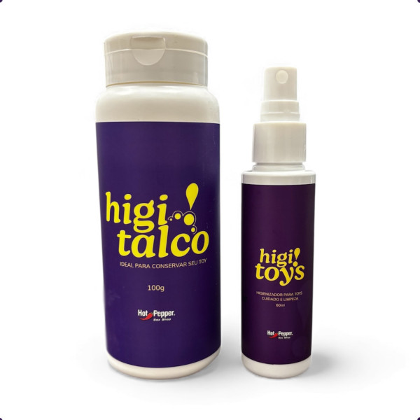 O Higi Kit é um Higienização Hot Pepper é a combinação perfeita para quem quer manter seus sex toys sempre limpos, seguros e com aparência de novos por muito mais tempo. Criado com o cuidado que a sua intimidade merece, o Higi Kit une dois produtos essenciais: o Higi Toys Higienizador para Toys, um higienizador antibactericida de ação rápida e eficaz, e o Higi Talco Hot Pepper, ideal para conservar a textura original de brinquedos eróticos, especialmente os de cyberskin e silicone.