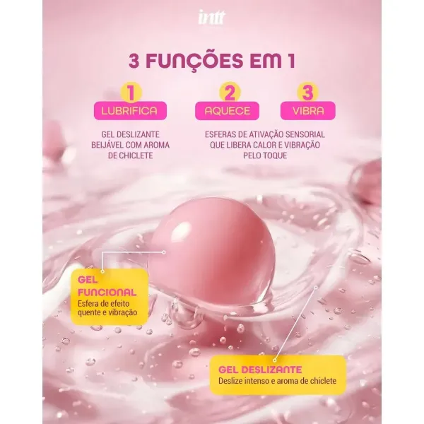 - Gel 3 em 1: desliza, vibra e aquece