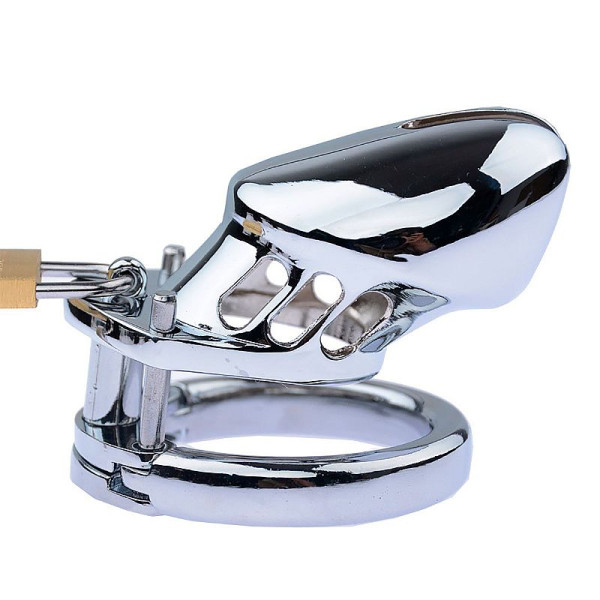Fabricado em aço de alta durabilidade, possui argola única para o escroto e ponta vazada, proporcionando mais conforto durante o uso e facilitando a higiene. Seu tamanho reduzido torna a proposta ainda mais provocante, mantendo o parceiro contido enquanto o desejo cresce a cada hora.